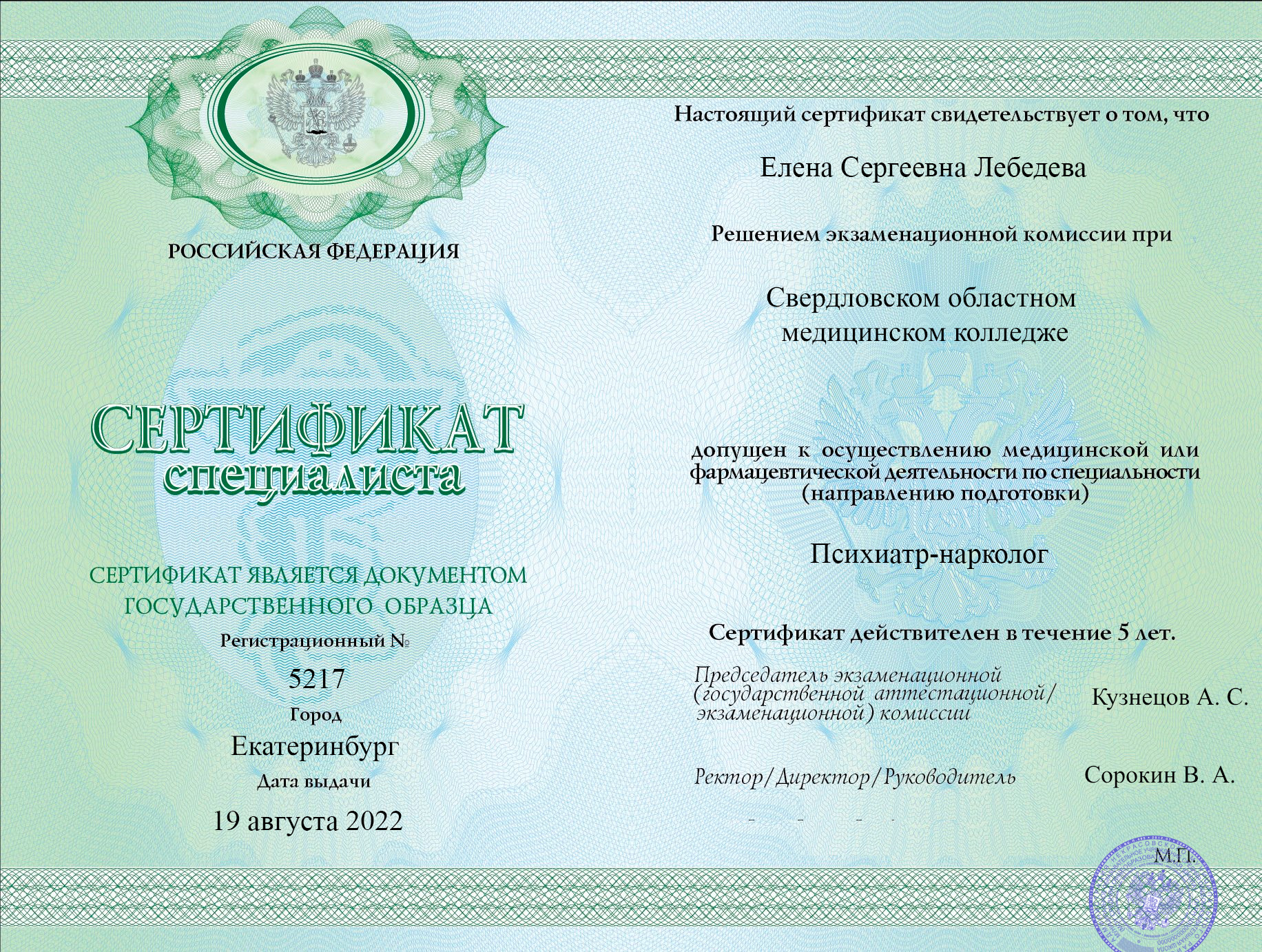 Елена Сергеевна Лебедева врач нарколог клиники доктора Стукаловой в Вилючинске